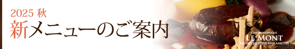"日本ならではの四季を感じる" をテーマに、地元御殿場で採れた新鮮な野菜や駿河湾の魚介類、 県産の銘柄肉など、様々な食材に焦点を当てたコース料理をご提供いたします。
